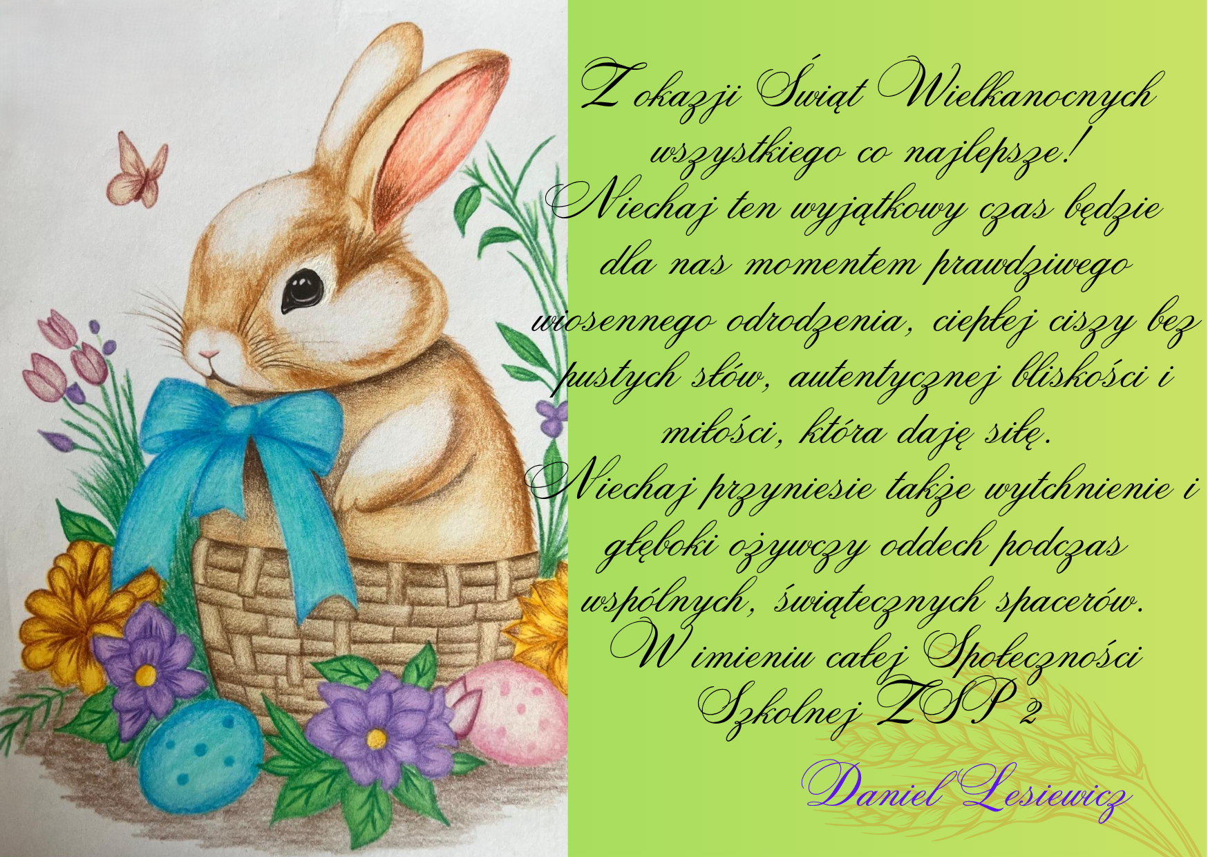 już-już... To najlepszy czas na przedstawienie w życzeniach pracy z naszego szkolnego konkursu na kartkę wielkanocną,